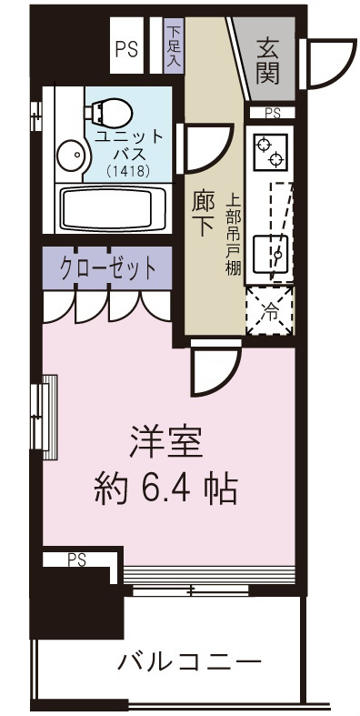 1K 洋室 6.4帖 1室 |