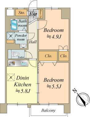 2DK DK 5.8帖/洋室 5.5帖/洋室 4.9帖 |
