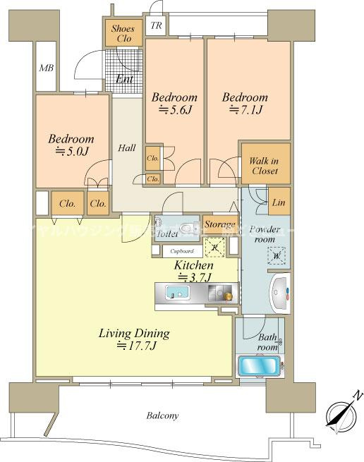 3LDK LDK 21.4帖/洋室 7.3帖/洋室 5.6帖/洋室 5.0帖 |