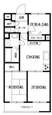 3DK DK 6.0帖/洋室 6.0帖/和室 6.0帖/洋室 4.5帖 |