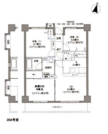 3LDK LDK 12.2帖/和室 6.0帖/洋室 6.7帖/洋室 5.0帖 |