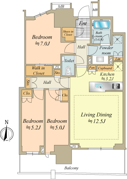 3LDK LDK 15.7帖/洋室 7.0帖/洋室 5.2帖/洋室 5.0帖 |